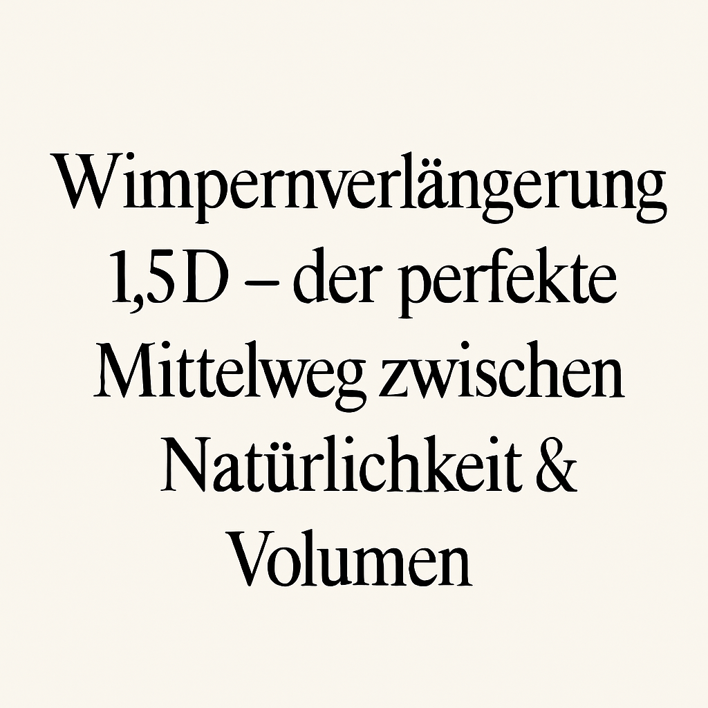 1,5D Lashes sind eine Kombination aus klassischen und Volumen Techniken. Es ermöglicht den Wimpernkranz dicker, voller und ausdrucksvoller zu machen, ohne das natürliche Aussehen zu beeinträchtigen. Optisch wirkt es so, als wäre eine Schicht Mascara auf die Wimpern aufgetragen worden.